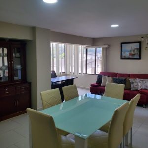 El condominio está ubicado en el sector urdesa norte. Cuenta con 3 habitaciones y 2 baños. Tiene estacionamiento subterráneo para un vehículo y elevador. Además el condominio cuenta con piscina, área social, y con guardianía las 24 horas del día.