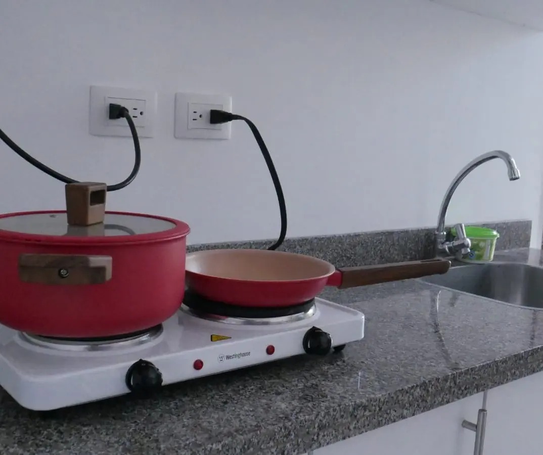 Los estudios cuentan con todo lo necesario para vivir de manera inmediata. El agua, luz, internet y TV por streaming están incluidos en el valor del arriendo. Además cuenta con un área de cocina compartida que tiene un anaquel independiente para cada habitación, hornilla electrica, refrigerador, microondas.
